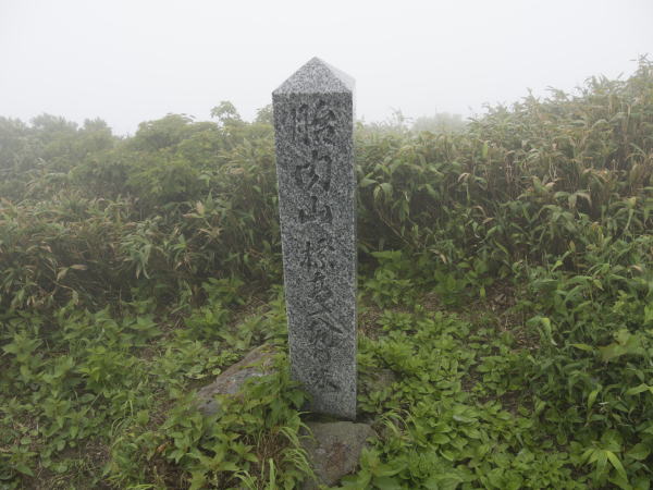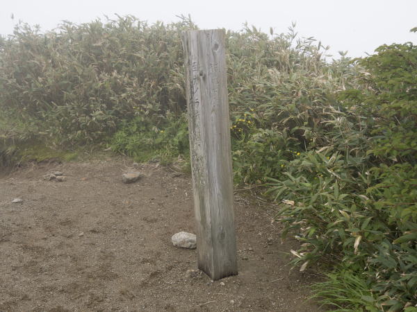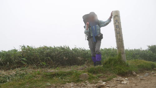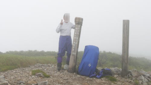 あいにくガスが掛かって・・・雨具を着ての縦走です。