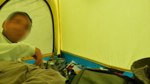テントの中で