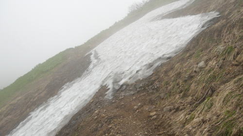 念のためこの雪渓は軽アイゼンを装着