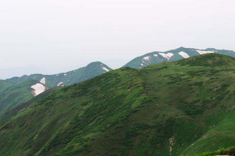北股岳よりこれから進む烏帽子岳方面を望んで |