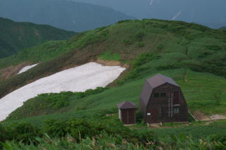 立てて叩きつけてきます。結局カメラは出せないまま頼母木小屋に14時20分に到着、今夜は小屋内に宿泊。