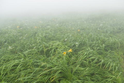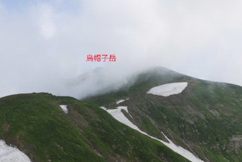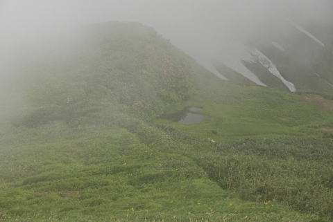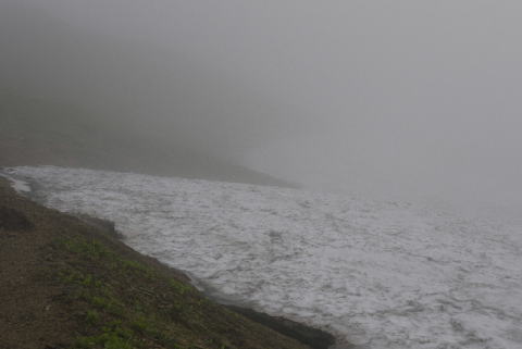 見通しは悪いのですがぼんやり雪渓と山肌の境界が
