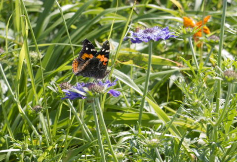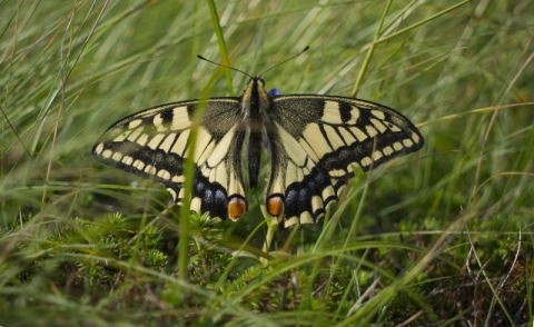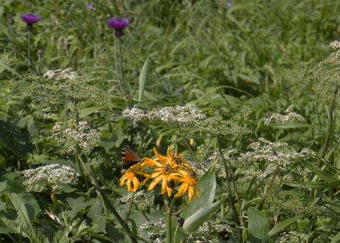 イイデリンドウで蜜を吸うキアゲハチョウ |