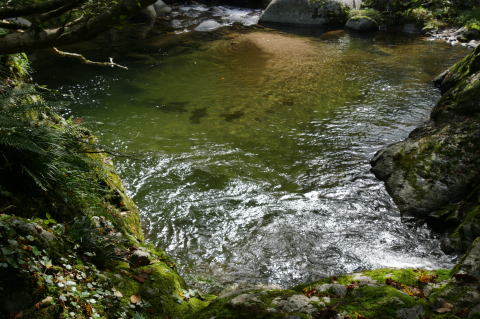 釣り登った岩から渓を振り返って