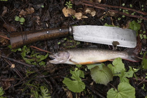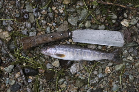 春のイワナは水分が多く塩焼きにしても美味しくないので燻製にし