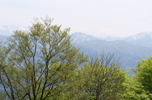 木に邪魔されて飯豊連峰をうまく捉えられません。 |