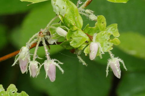 五頭連峰の中で一番標高(973.5m)の高い山です。 久し振りに登りました。天気予報は良かったのですが前日は 雨だったため登山道は湿った状態でした。 石戸の登山口よりスタートして30分程歩いた頃、なにか足に 違和感を覚えてズボンを降ろしてみたら山ビルが・・・慌てて ズボンを脱いで確認したら4箇所に付いていました。 右足に1箇所、左足に2箇所、臍の脇に1箇所。 引っ張ったらダメと持っている塩を振りかけると身を捩って離 れていきました。 本来、阿賀野川の右岸には山ビルは棲息しないとされていた のに。 動物に付いて拡散したのか人間が運んだのか? 画像はウラジロヨウラク |