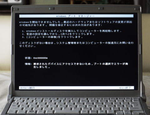 電源を入れましたがなぜかトラブル発生です。Windowsを開始できません。