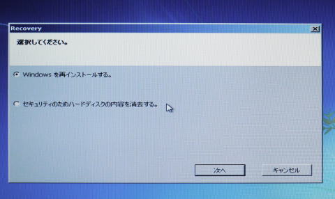 画面の指示に従ってリカバリーを進めます