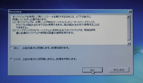 回復ディスクを選択し回復操作を進めます。