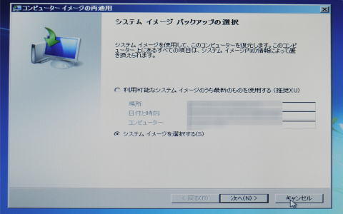 通常、保存してあるシステムイメージから回復する場合はこの画面は出ません