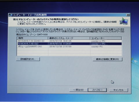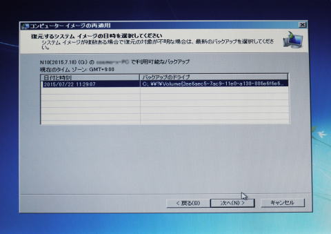 これは2回目のシステムイメージの回復画面です。