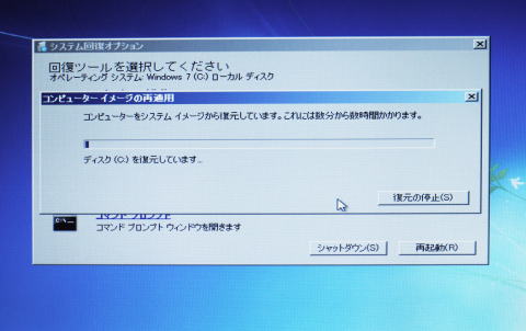 保存していたシステムイメージに回復できたので画面に従って再起動し、無事