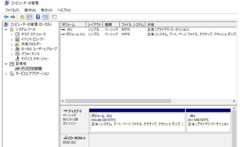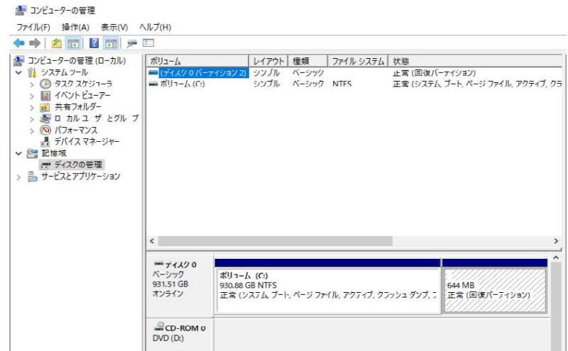 コンピュ―ターの管理からディスクの管理を表示して