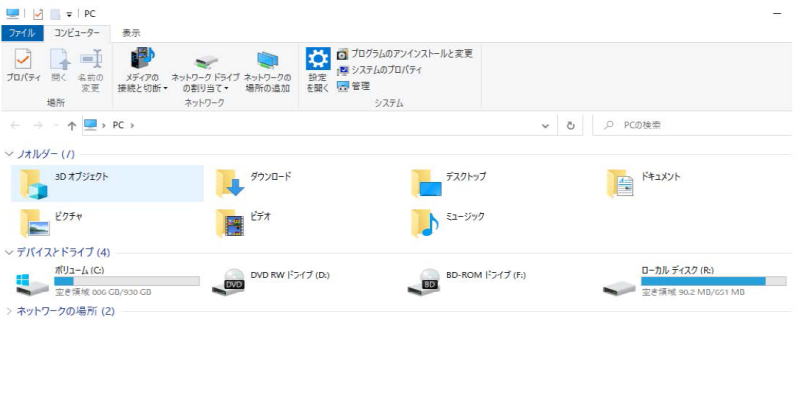 回復環境がローカルディスク(R:)として表示されました。