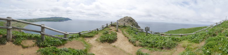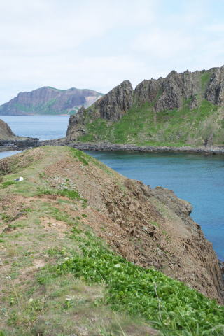 右手に見えるトレイルコースを登り左手に突き出たゴロタ岬に向かいます |