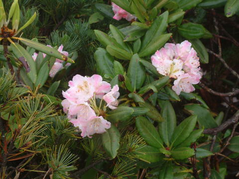 右は至仏山の頂上から山の鼻に下る途中に咲いてたシオガマの
