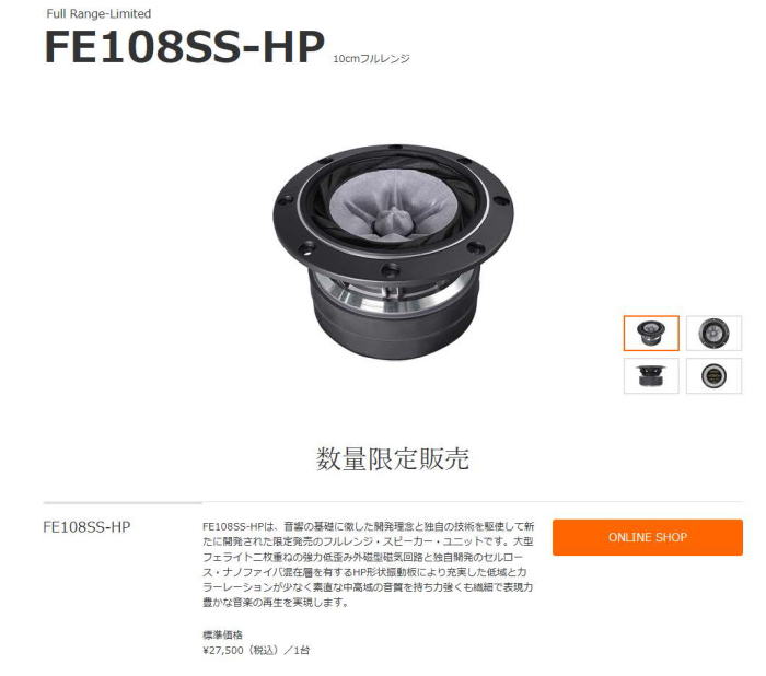 FE108-Solに続いて同じ10cm口径のFE108SS-HPが発売されることを知り、ついついインターネットショッピングの購入ボタンを
