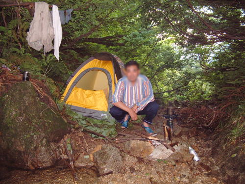 今夜の寝場所・・・テントを設営し画面左下の小さな