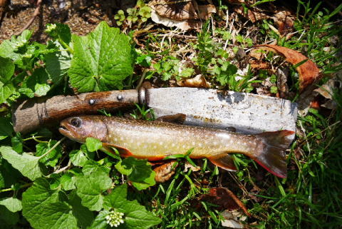 今年の初イワナ。28センチですが痩せています。 |