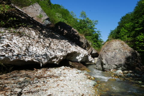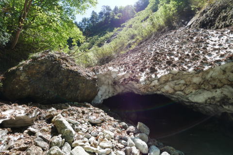 最近は温暖化のせいかこの場所に雪渓が残ること事態が珍し