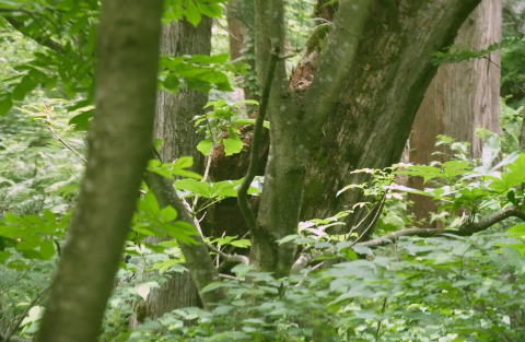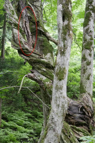 最上流の砂防ダムを越え山道を歩いていると前方の木に