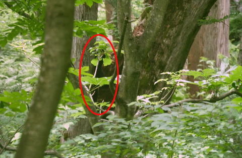 登っている熊を発見。 距離は約50m。