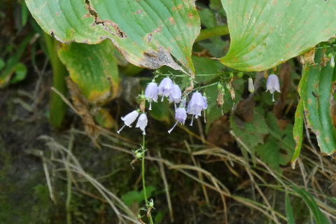 ツリガネニンジンの白と紫の花 |