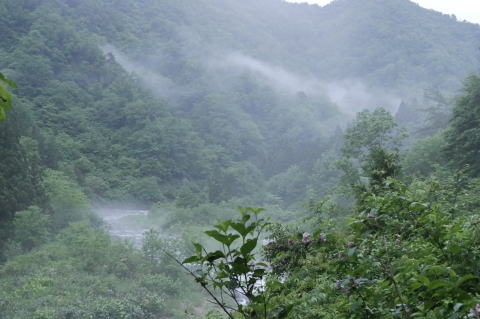 少し歩くと川面の霧が晴れ始めたので天候の回復を予感。
