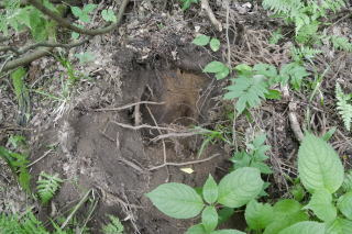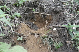 林道脇に掘られた穴。人間が掘った穴でないことは