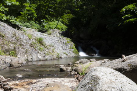 流れの強さを確認し、渡渉を諦めて別の小さな沢を釣ること