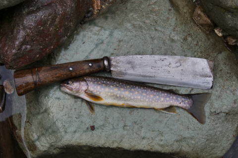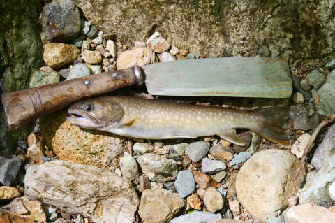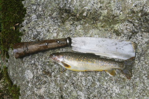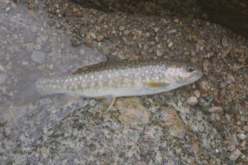 最初にでたのは15cm位の小型イワナ・・・リリース |