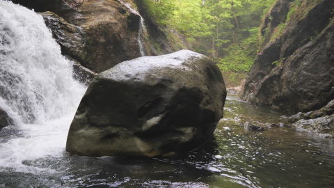 左から流れ込んでいる滝の上に出るのですが岩場を登るために