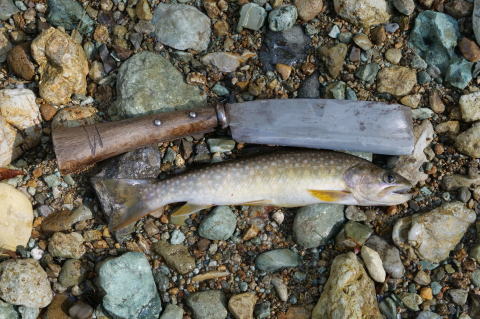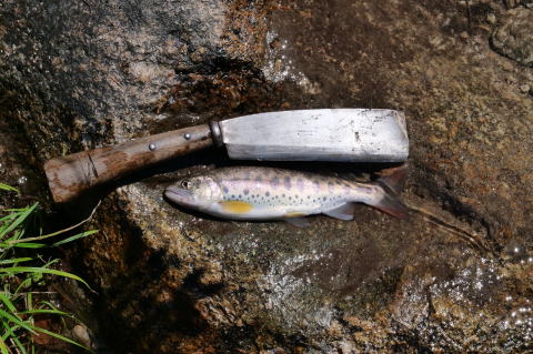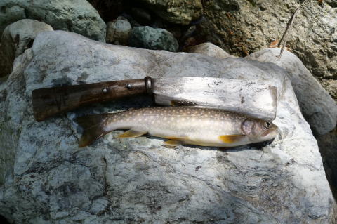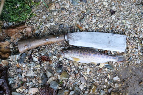 2021 渓流の記録 04.27 この日、この地方の最低気温の予報はー2℃と氷点下。 寒さで指がかじかんで思うように釣り糸を竿に付けること ができず苦労しました。 ようやく朝日が上のブナ林を照らしてくれました。 渓にはまだ朝日が届きません。 ピンクの色濃いヤマザクラが可憐でした。 今年の初イワナ ジャスト、尺イワナ この雪渓を潜って先に進みます。 2尾目29cmのイワナ 今冬は雪が多かったのでここの雪渓が残っていることを期待して いたのですがもう少し残っていないと上流には進めません。 ここを越えることができたのは過去に2回だけです。 ギフチョウの恋のステージ 09.20 40数年振りにヤマメ釣りに出掛けて来ました。 24cmのヤマメ、魚体の美しさはイワナに勝ります。 小さな渓でボサ(両岸から渓に被さっている木)が多く竿を操る には苦労します。 竿、2本が犠牲になりました。 23センチの魚体 (イワナと違ってズッシリと重い) 小さな渓ですがこの流の中を遡行しなければならないので足を滑らせないように細心の注意。 朝露に濡れたミソハギ この日は19cm~24cmのヤマメが5尾、揃いました。 この川のヤマメは陸封型です。
