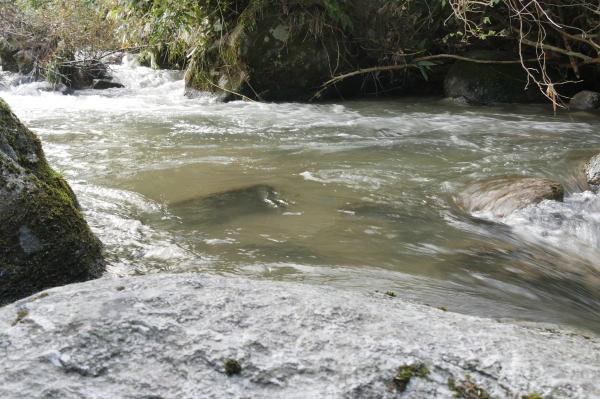 前々日まで降り続いていた雨のせいで渓は増水して