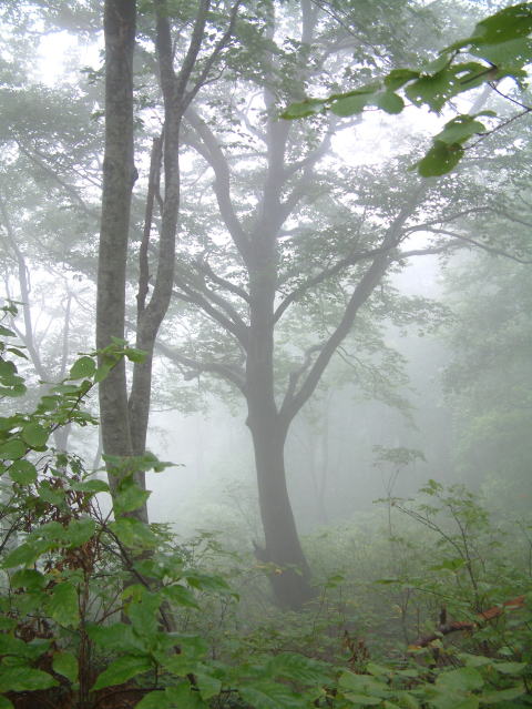 近づくと近づいた分だけカモシカは離れる。カメラは雨が強くて出せないので撮影はあきらめて・・・林道を進む。
